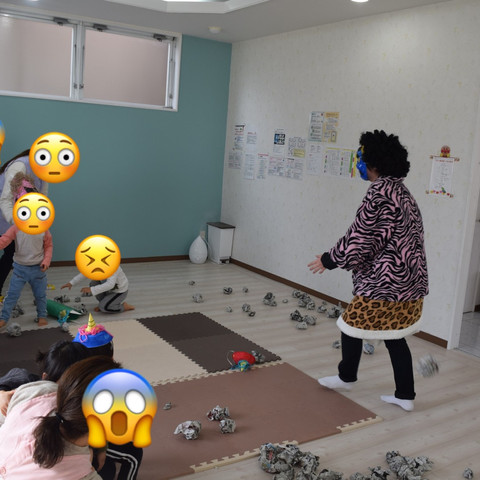 お友達が連れていかれそうになったら、みんなで協力して豆を投げます。